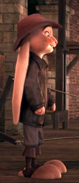Peter, why, why did you name your kid Chickenhare? That's like... "Allow me to introduce my adopted son, Hybrid Mutant." No wonder he's got issues. (In France this was avoided by calling him Hopper.) Something nice about the film is the message it's going for: Instead of feeling ashamed for being different, accept yourself for who you are.