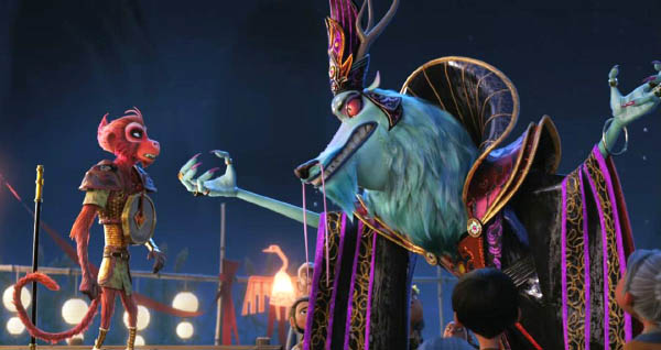 Actually almost no one in the film is likeable. The other main furry character is the Dragon King, whose part in the original story has been changed a lot. Now his role is much larger; he's the main antagonist. I wasn't big on his character design, his sidekicks nor his musical number. In fact, the most sympathetic character is... the magic stick. Who only communicates by humming.